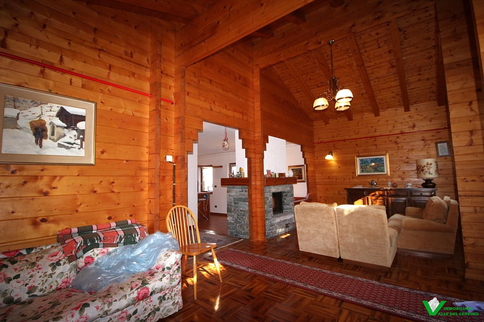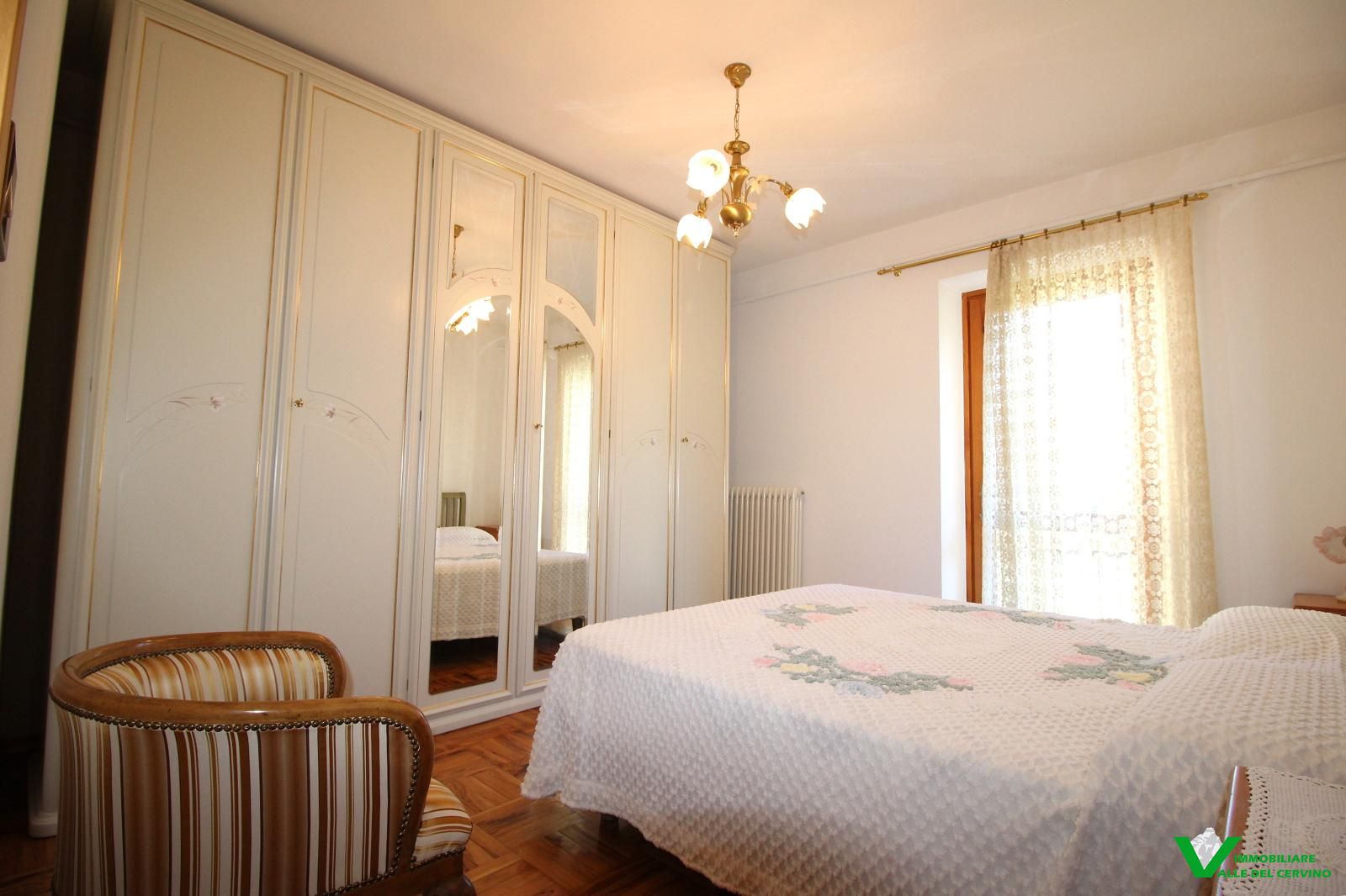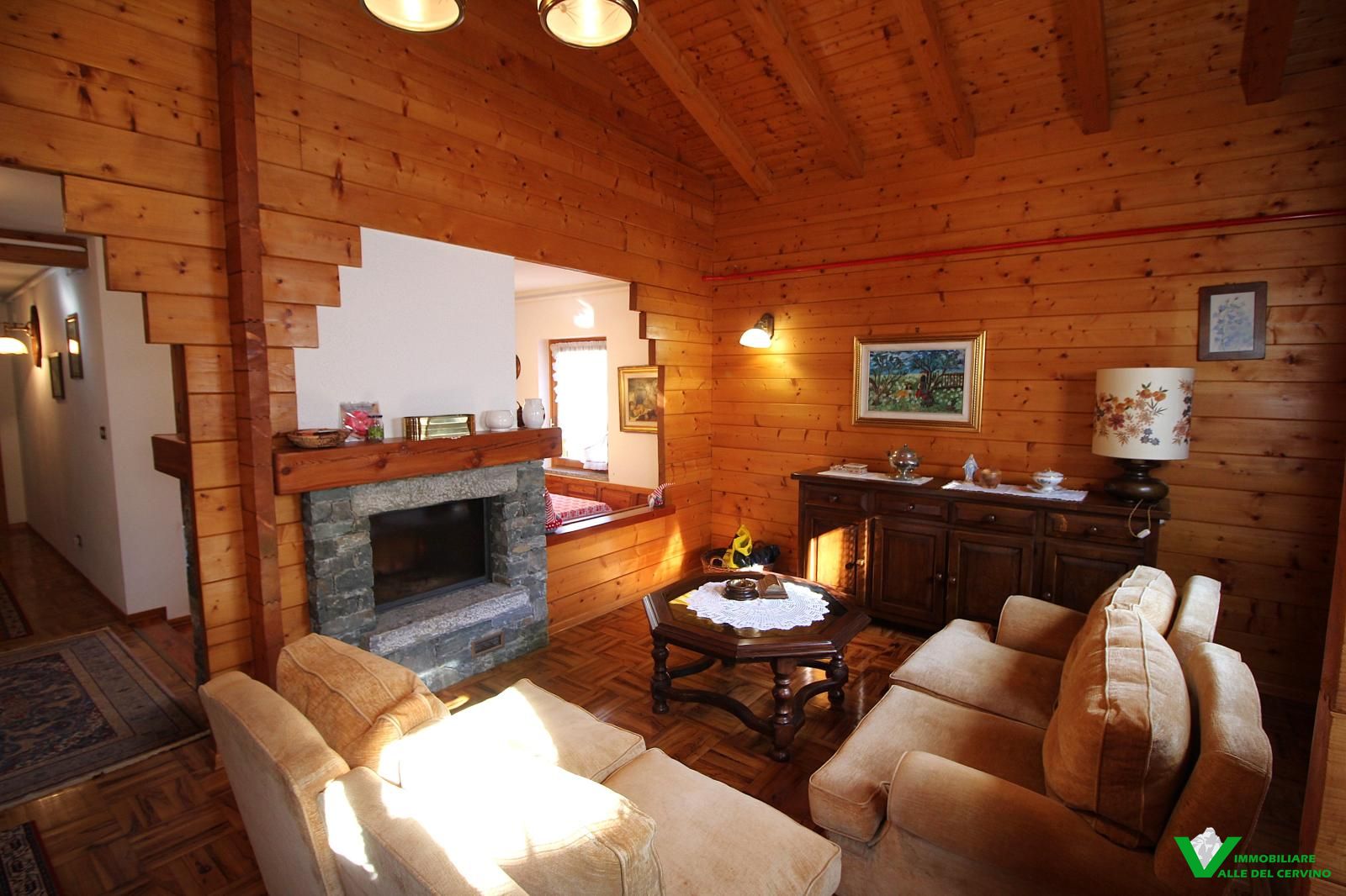 In località Grange de Barme, tranquilla e a poca distanza dai principali servizi, suggestiva villa indipendente circondata da 500 mq di curata area verde nella quale risalta tradizinnale scultura in legno. Entrando da gradevole porticato si può apprezzare la riuscita distribuzione degli spazi con separazione degli ambienti angolo cottura, zona pranzo, soggiorno e salotto in unico open space nel quale risalta caminetto bifacciale; camera e bagno finestrato a completare il piano terra: da tutti gli ambienti accesso diretto all'area esterna. Al piano primo e ultimo 2 camere entrambe con accesso a balcone con gradevole vista sulla valle e bagno. Esternamente posto auto e box auto, cantina e locale caldaia.