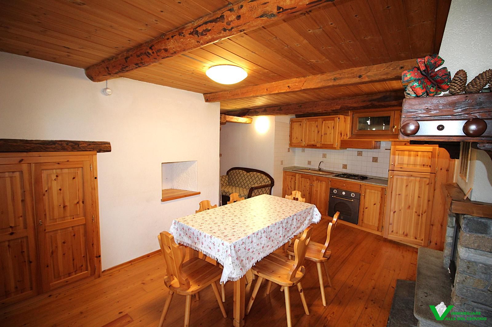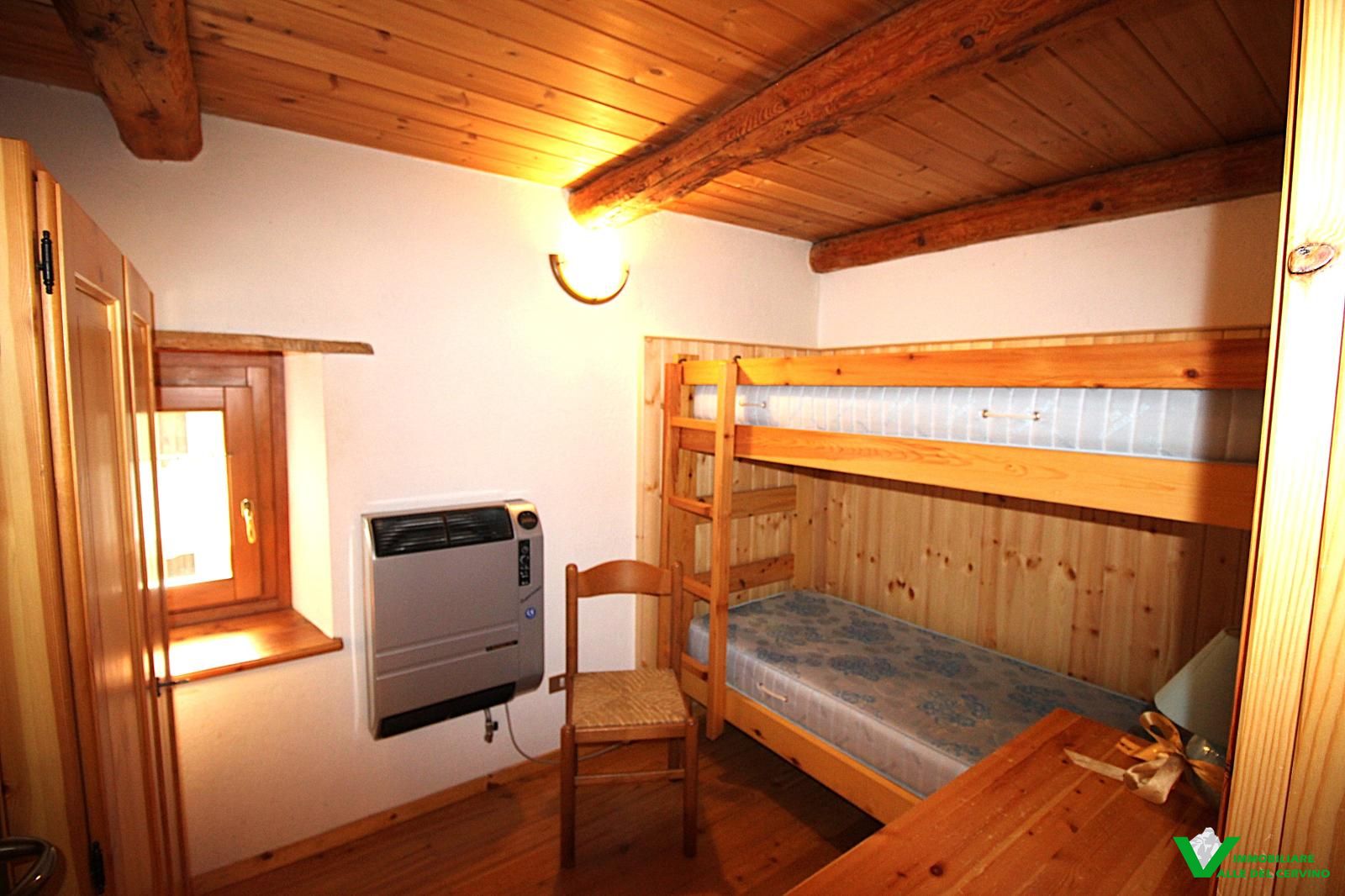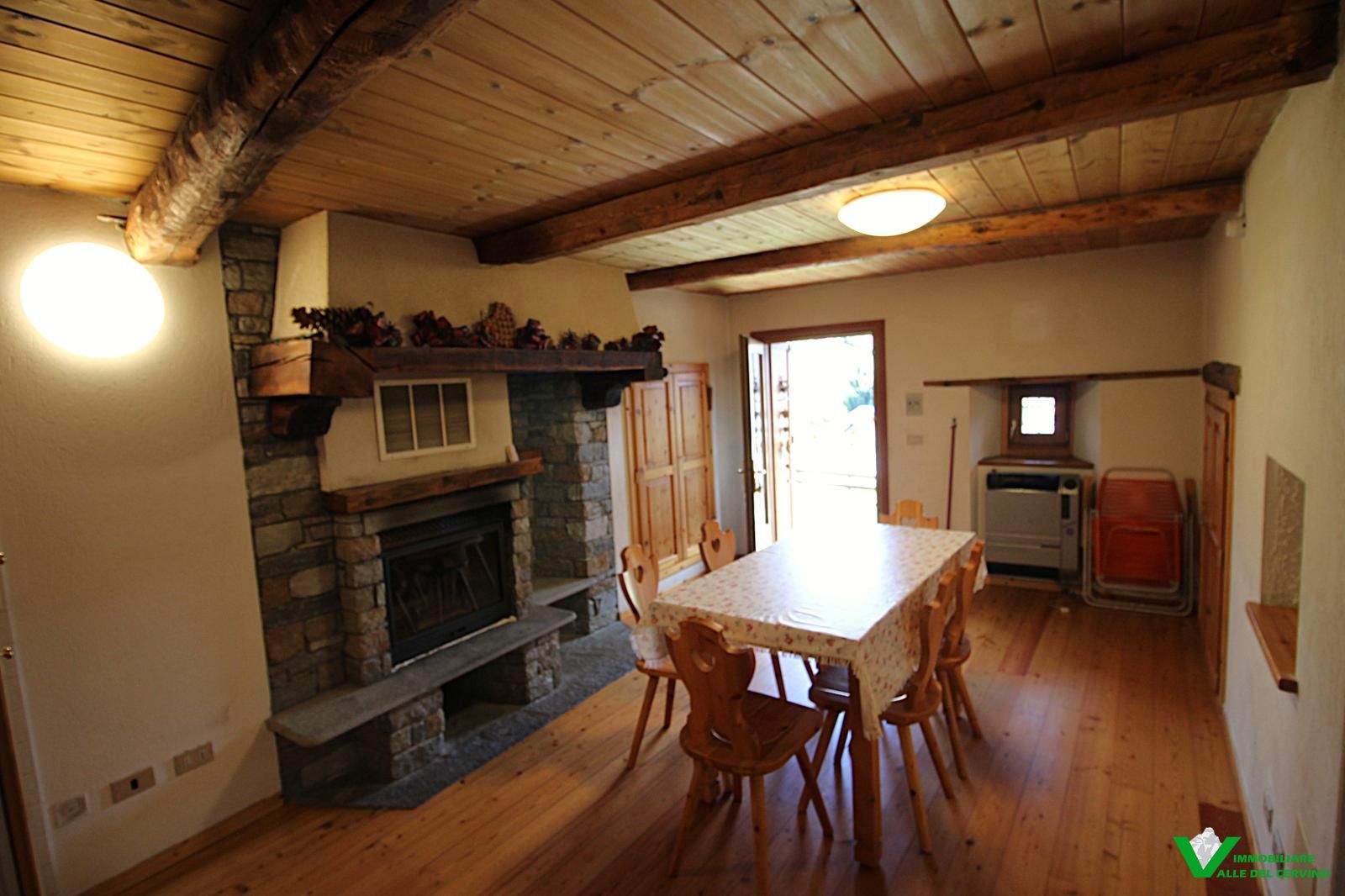 Verney, in bella posizione: tranquilla, soleggiata, e a poca distanza dal capoluogo, bella ristrutturazione con mantenimento degli elementi originali in pietra e legno da cui si accede a curato giardino di 100 mq. L'appartamento è costituito da soggiorno con angolo cottura con caratteristico caminetto, camera, studio, bagno.