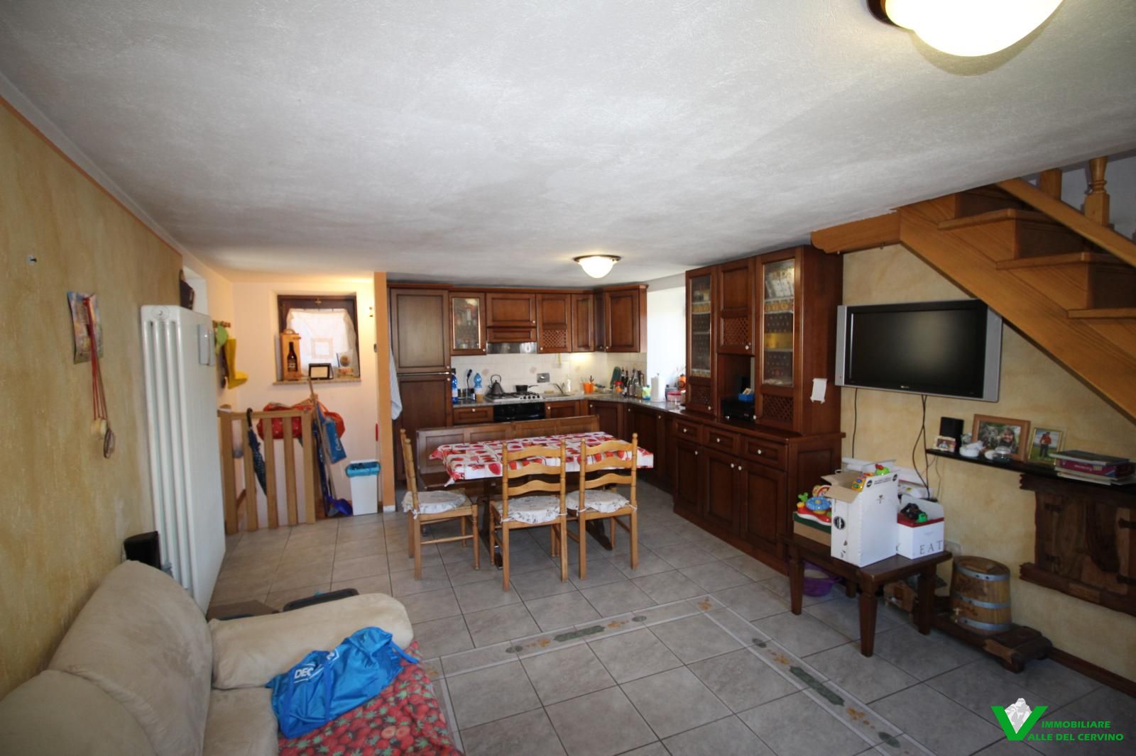 Al piano terra ambiente living con zona cucina, soggiorno e salotto. Al piano primo ambiente con tetto in legno a vista costituito da 2 camere e bagno. Dal disimpegno si accede a balcone rivolto a Sd con bella vista sulla valle. Al piano seminterrato accessibile dall'interno e/o da scalinata esterna deposito con bagno. Riscaldamento auotonomo GPL e stufa pellet.