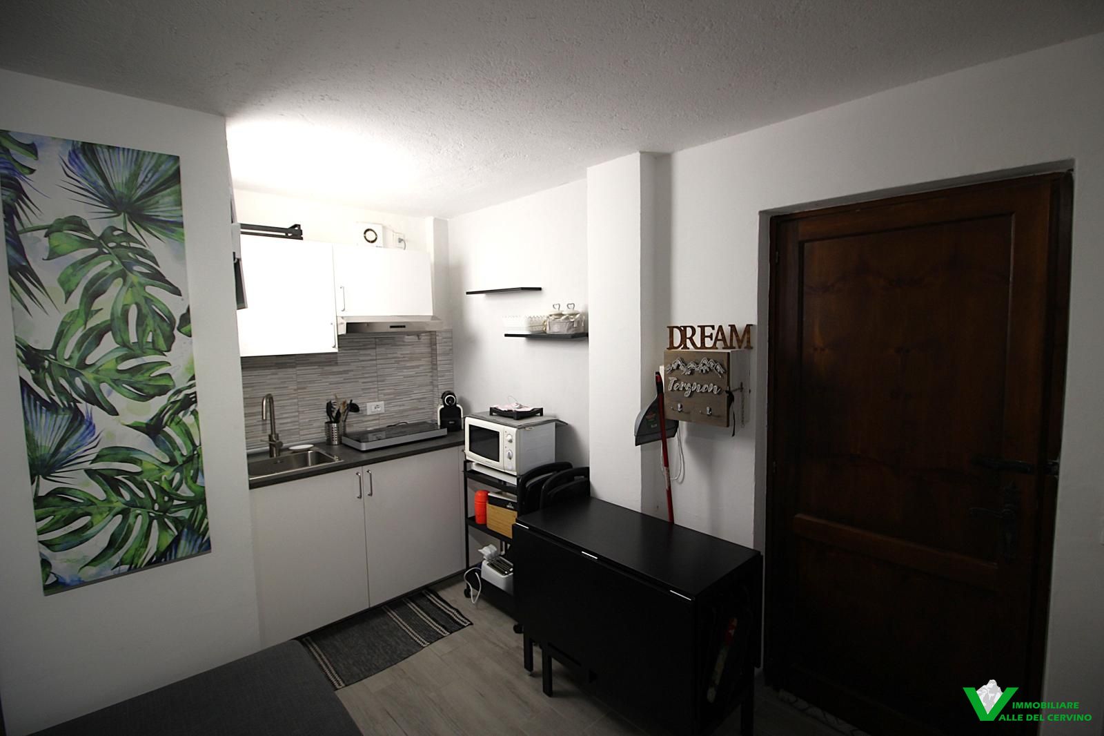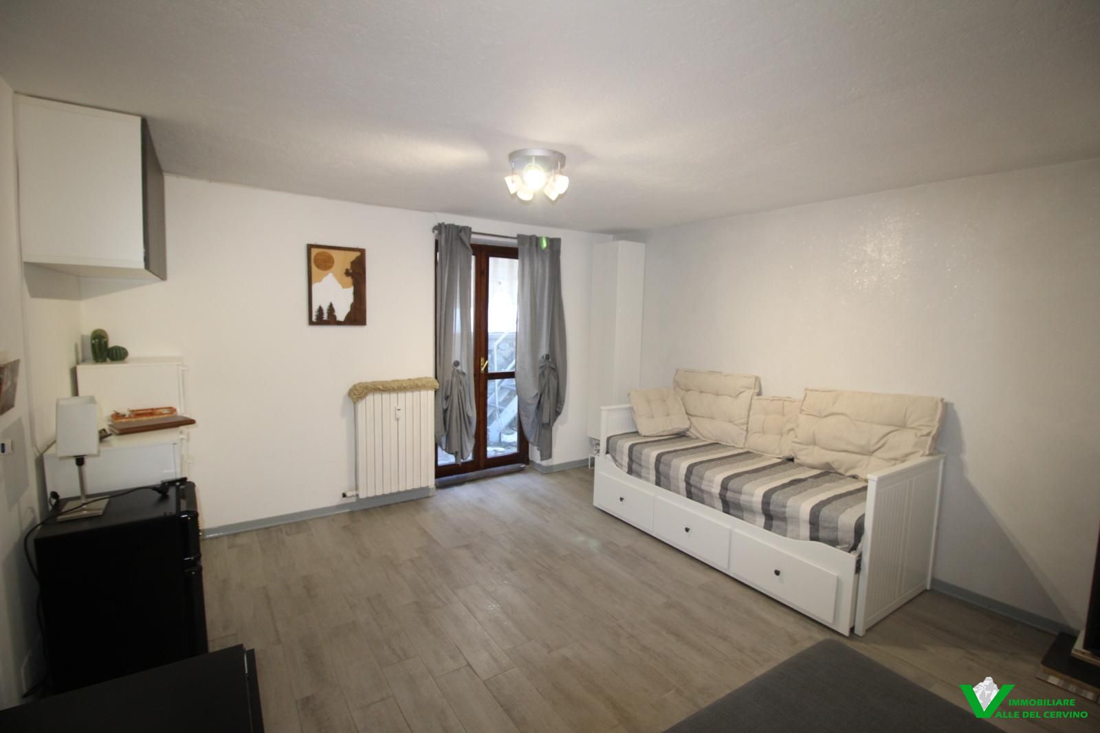 In contesto condominiale, monolocale soggetto a gradevole ristrutturazione interna. L'appartamento è composto da soggiorno con angolo cottura e divano letto, bagno finestrato. Accesso diretto su area di corte e grande terrazza condominiale da cui godere di bella vista sulla valle. Cantina e comodo box auto di proprietà
