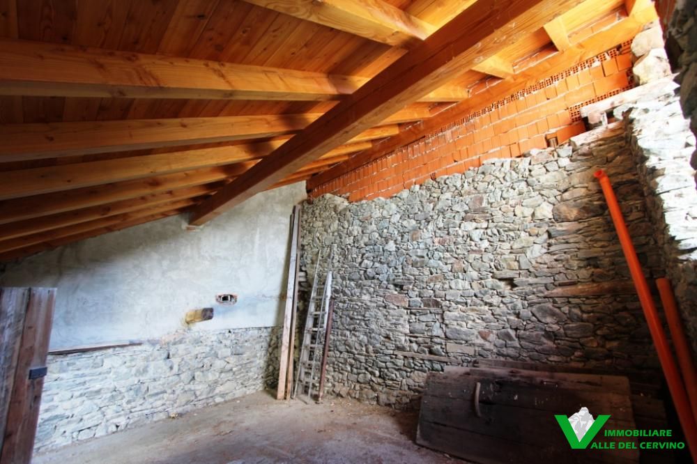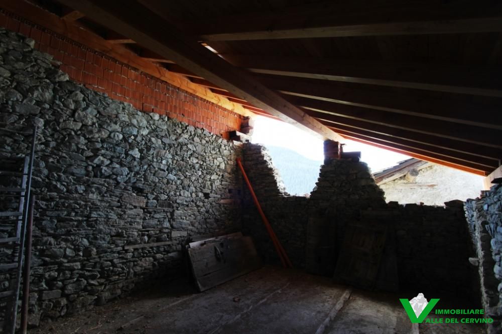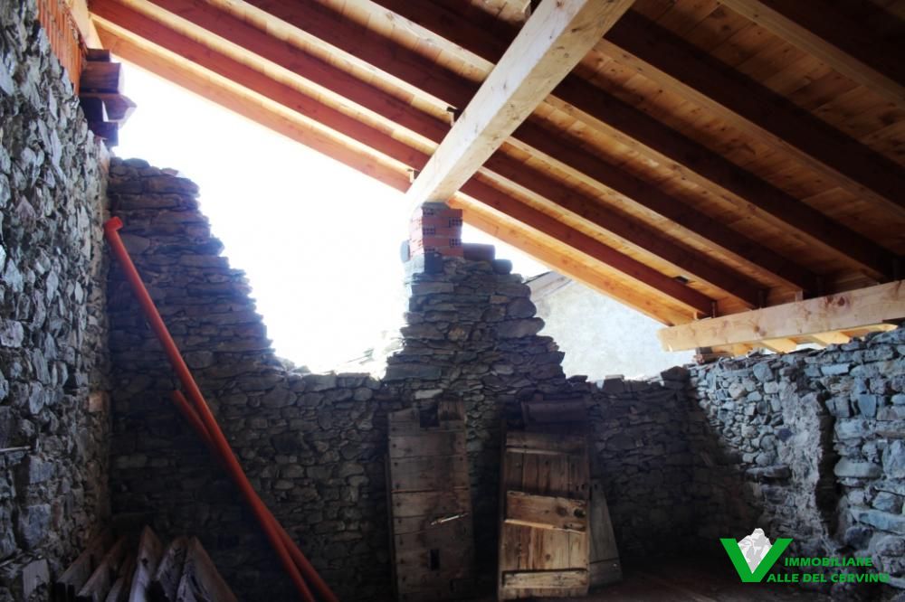 Frazione Vieu. Porzione di rustico da terra a cielo con tetto in lose recentemente rifatto. Possibilità di ricavarne un grazioso appartamento con soppalco e vetrate.