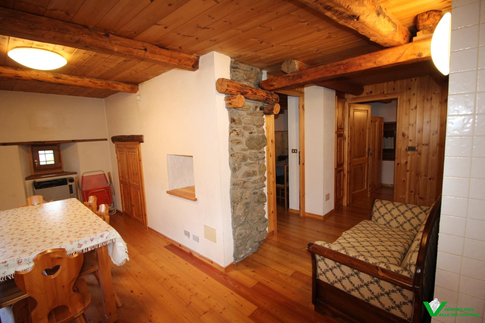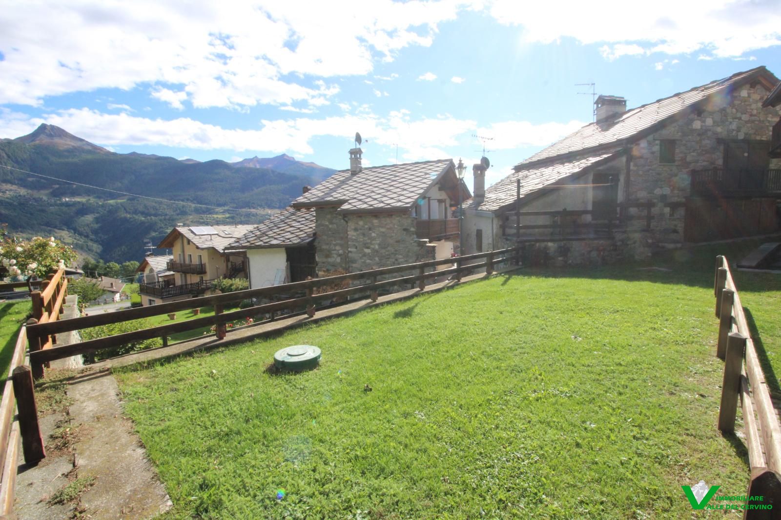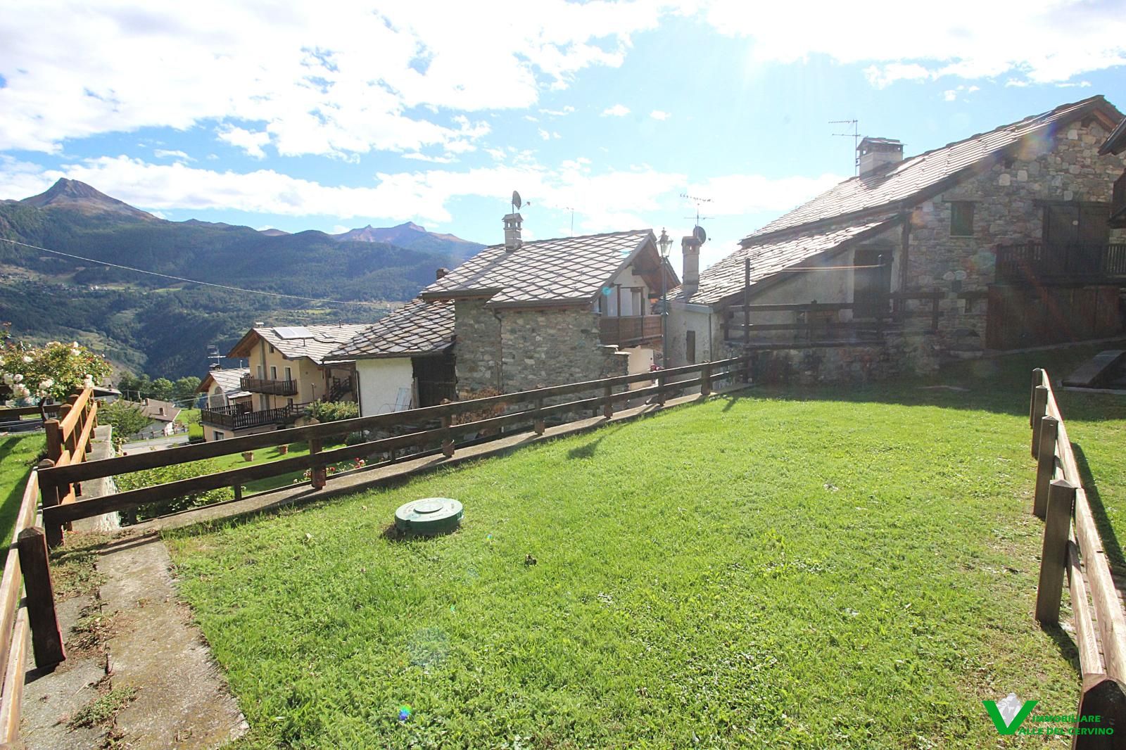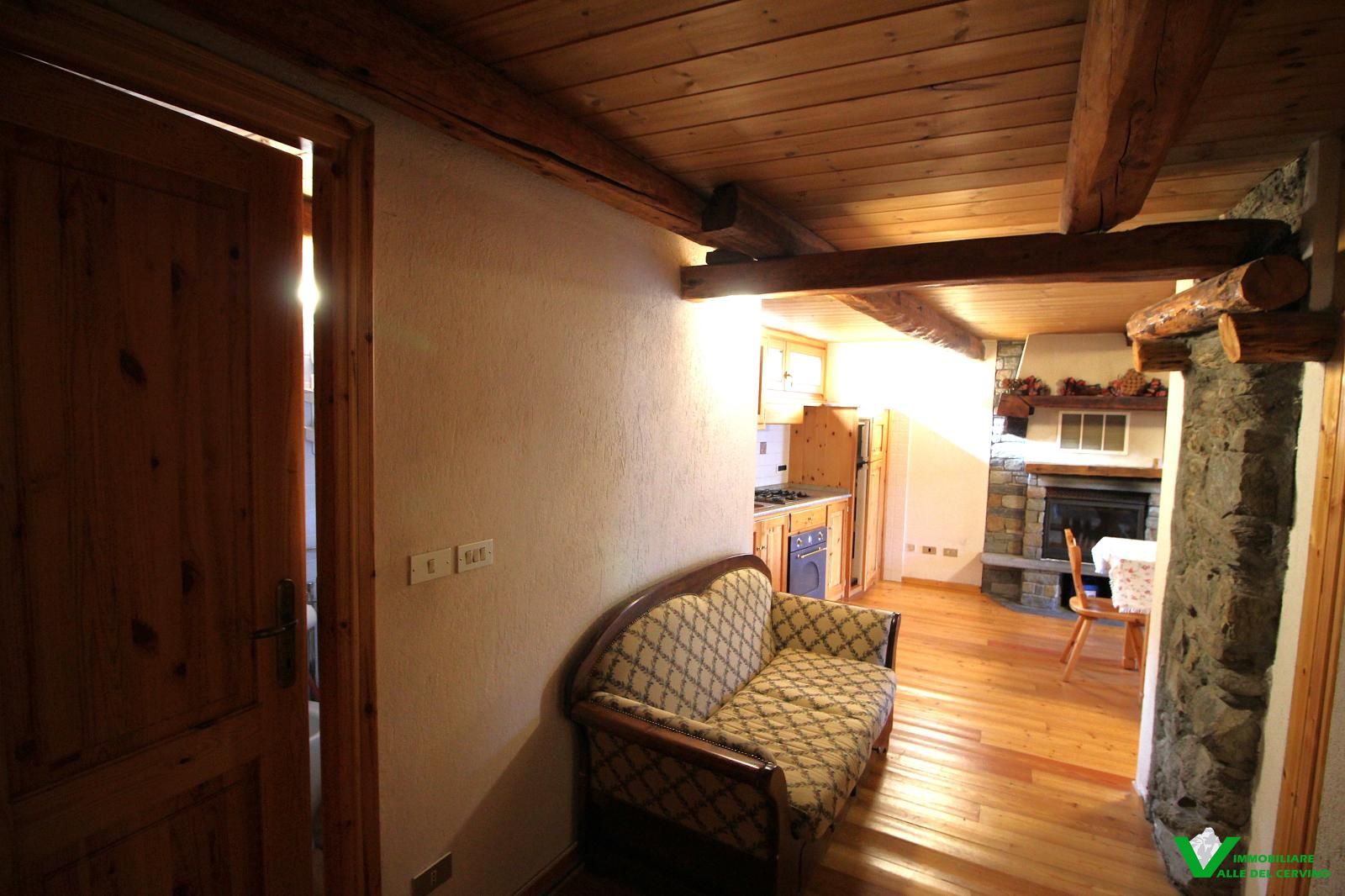 Verney, in bella posizione: tranquilla, soleggiata, e a poca distanza dal capoluogo, bella ristrutturazione con mantenimento degli elementi originali in pietra e legno da cui si accede a curato giardino di 100 mq. L'appartamento è costituito da soggiorno con angolo cottura con caratteristico caminetto, camera, studio, bagno.