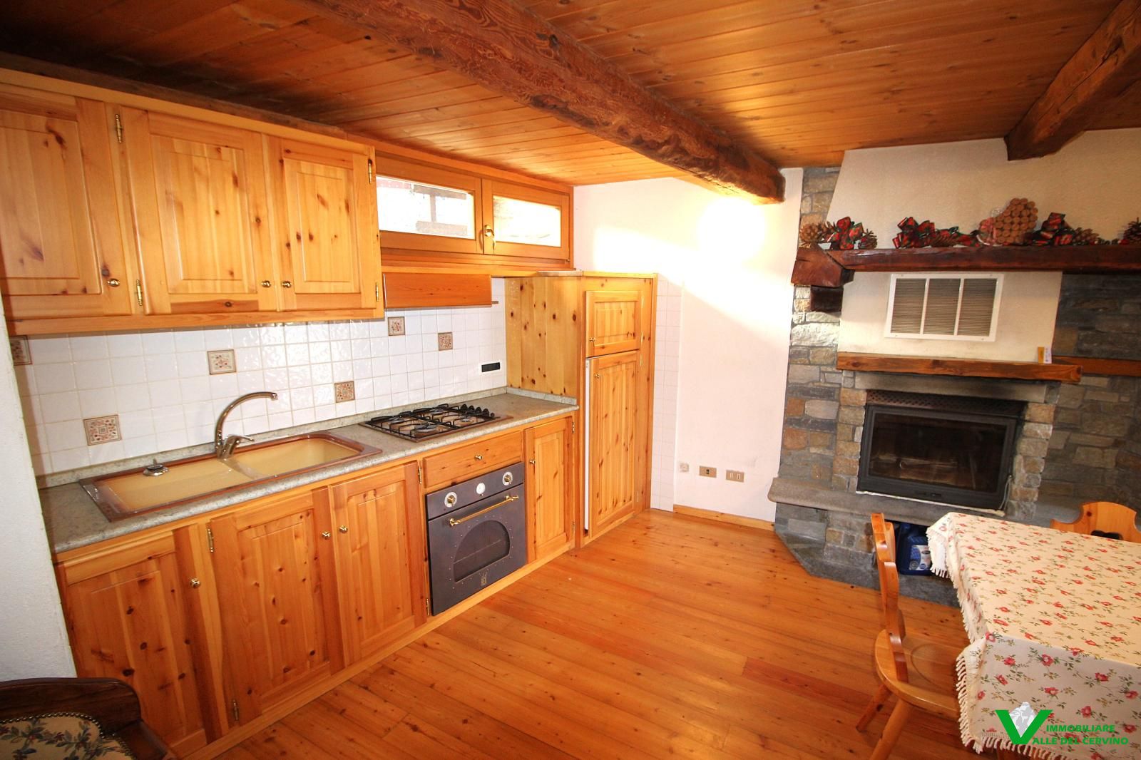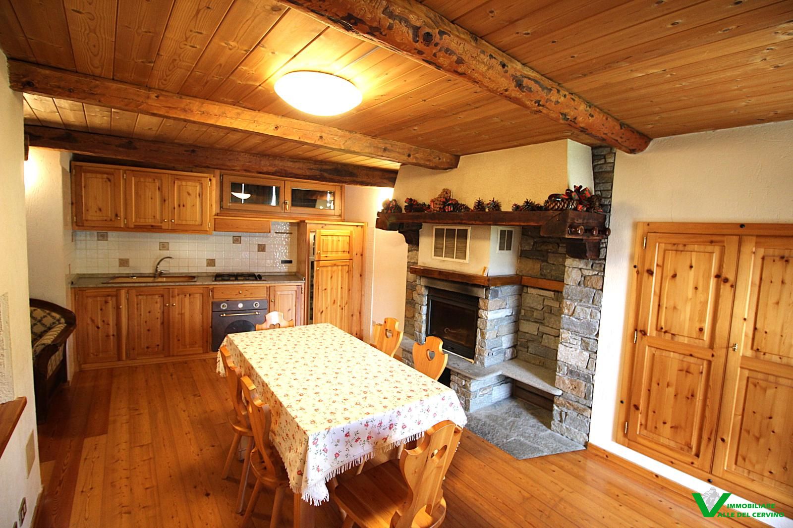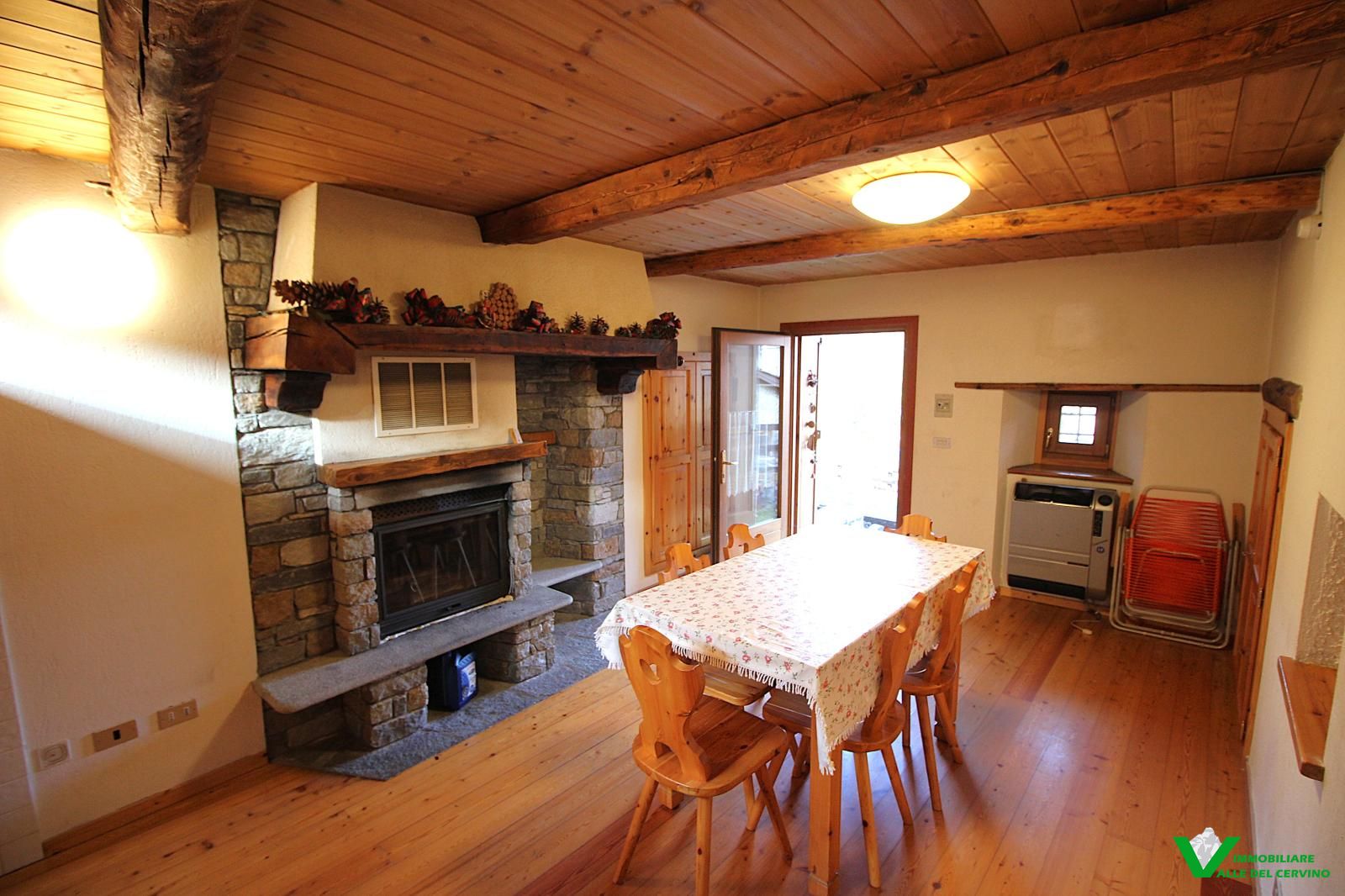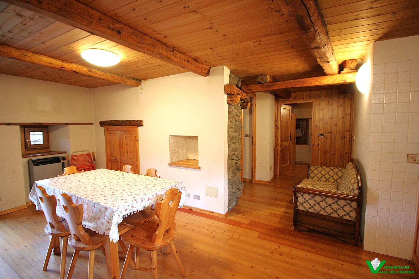 Verney, in bella posizione: tranquilla, soleggiata, e a poca distanza dal capoluogo, bella ristrutturazione con mantenimento degli elementi originali in pietra e legno da cui si accede a curato giardino di 100 mq. L'appartamento è costituito da soggiorno con angolo cottura con caratteristico caminetto, camera, studio, bagno.