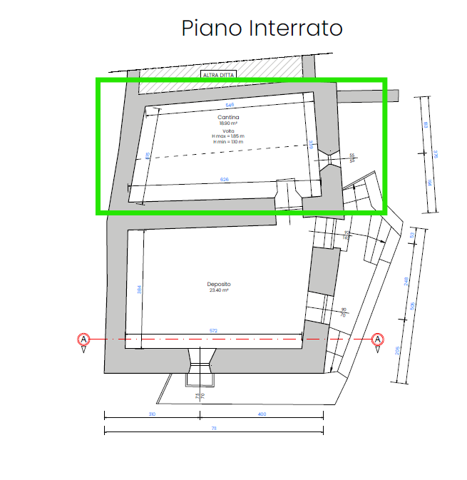 Al piano seminterrato bel deposito a volta.