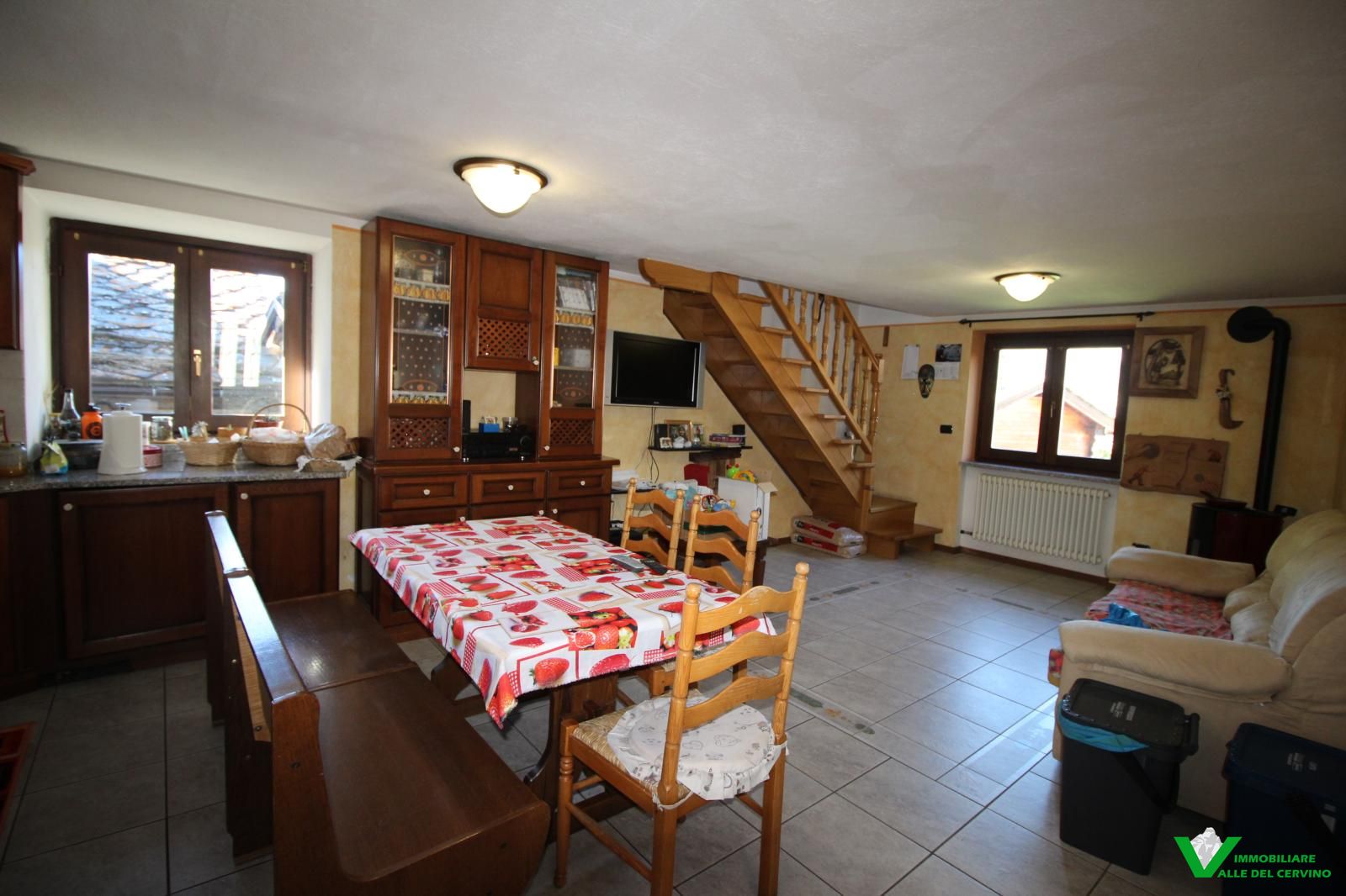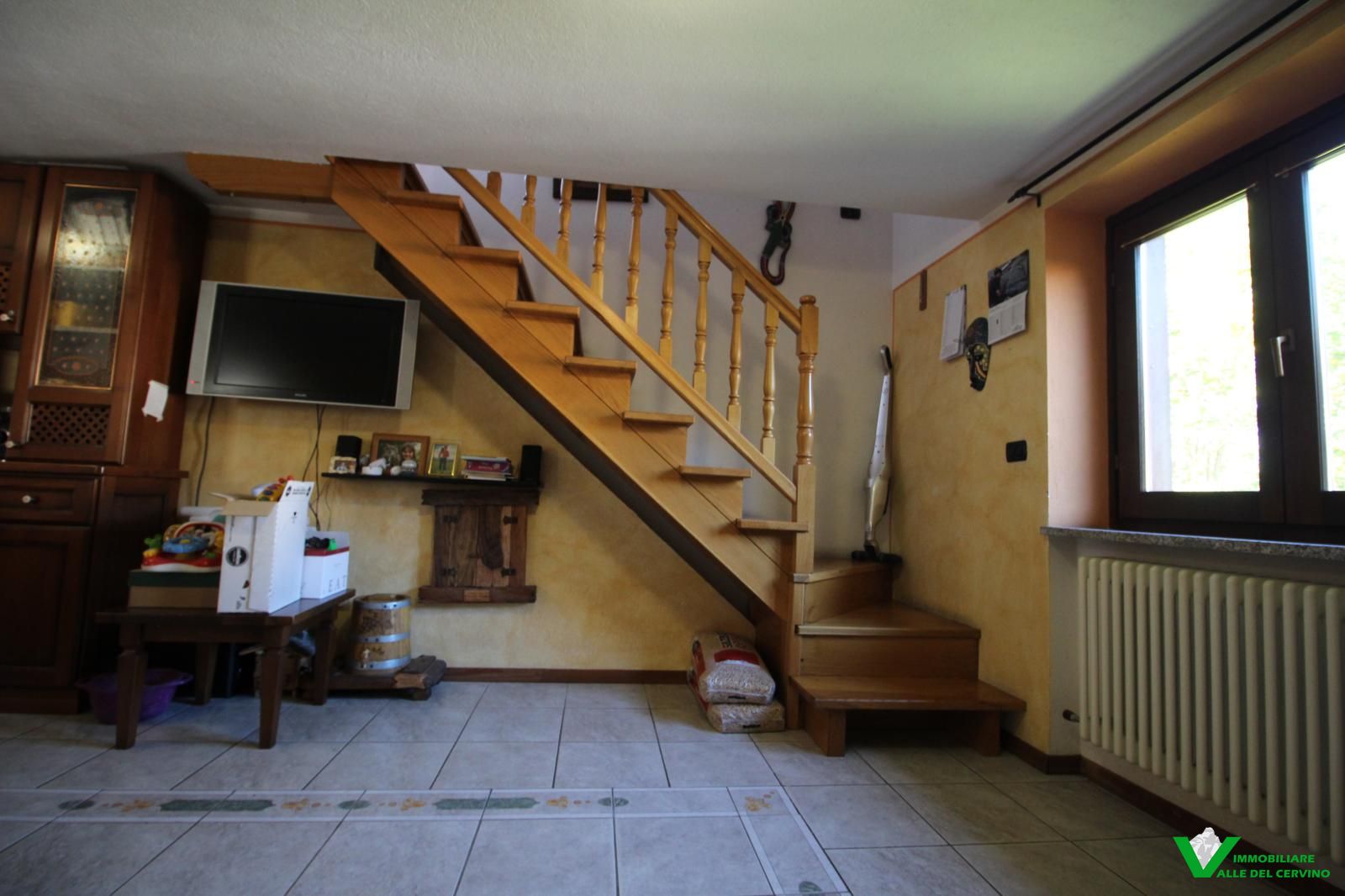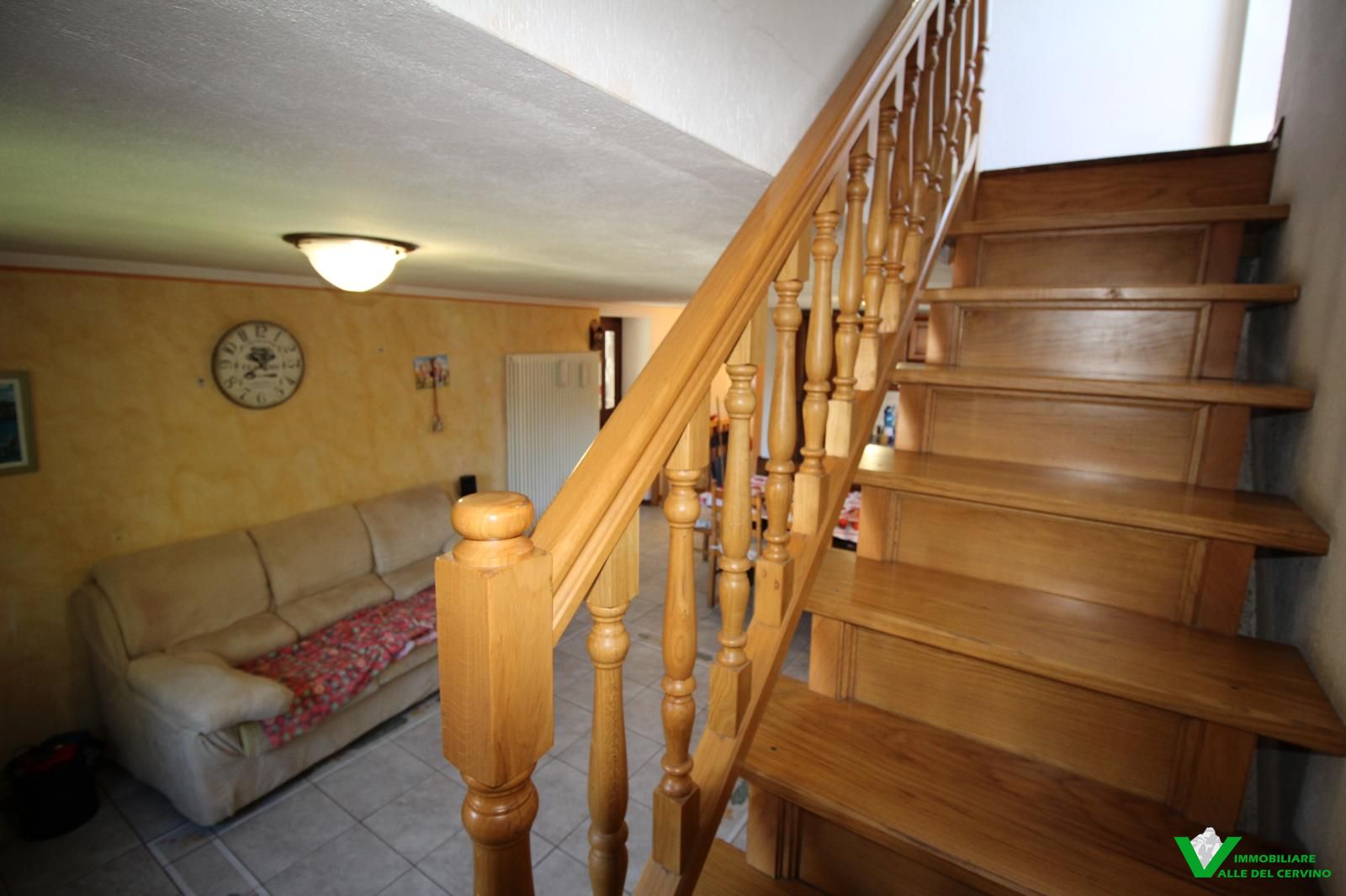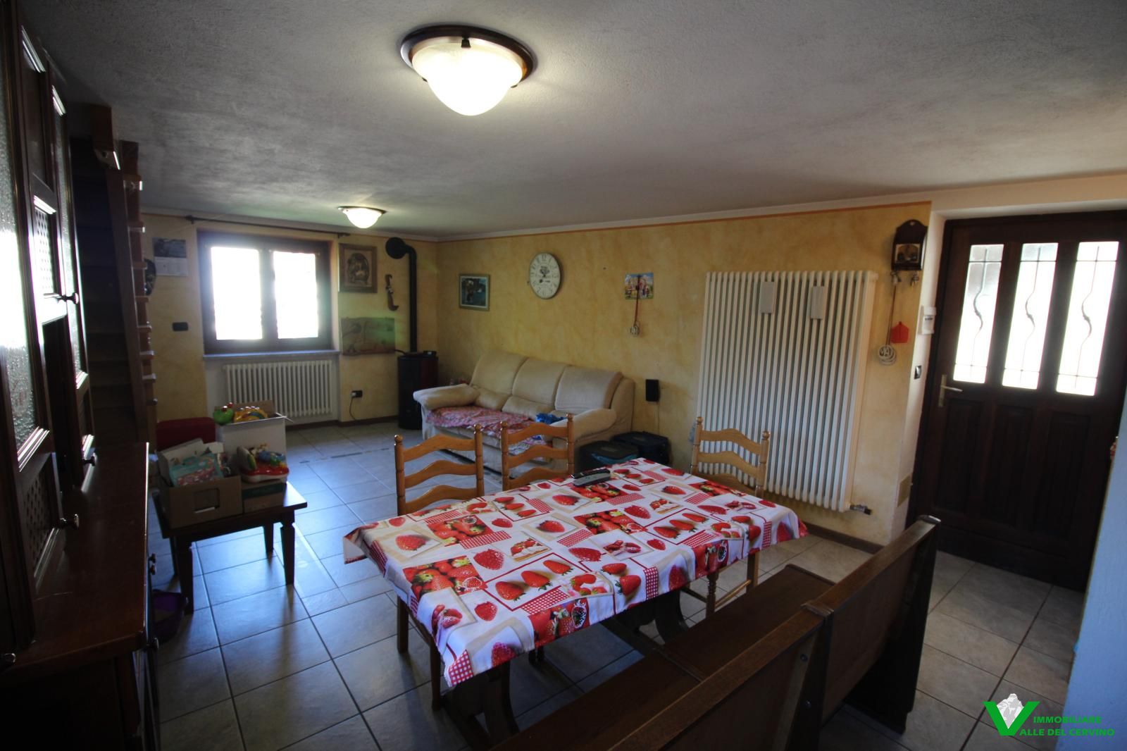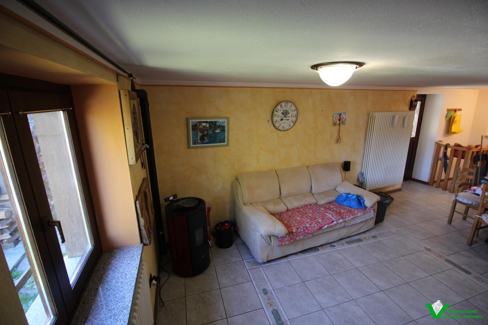 Al piano terra ambiente living con zona cucina, soggiorno e salotto. Al piano primo ambiente con tetto in legno a vista costituito da 2 camere e bagno. Dal disimpegno si accede a balcone rivolto a Sd con bella vista sulla valle. Al piano seminterrato accessibile dall'interno e/o da scalinata esterna deposito con bagno. Riscaldamento auotonomo GPL e stufa pellet.