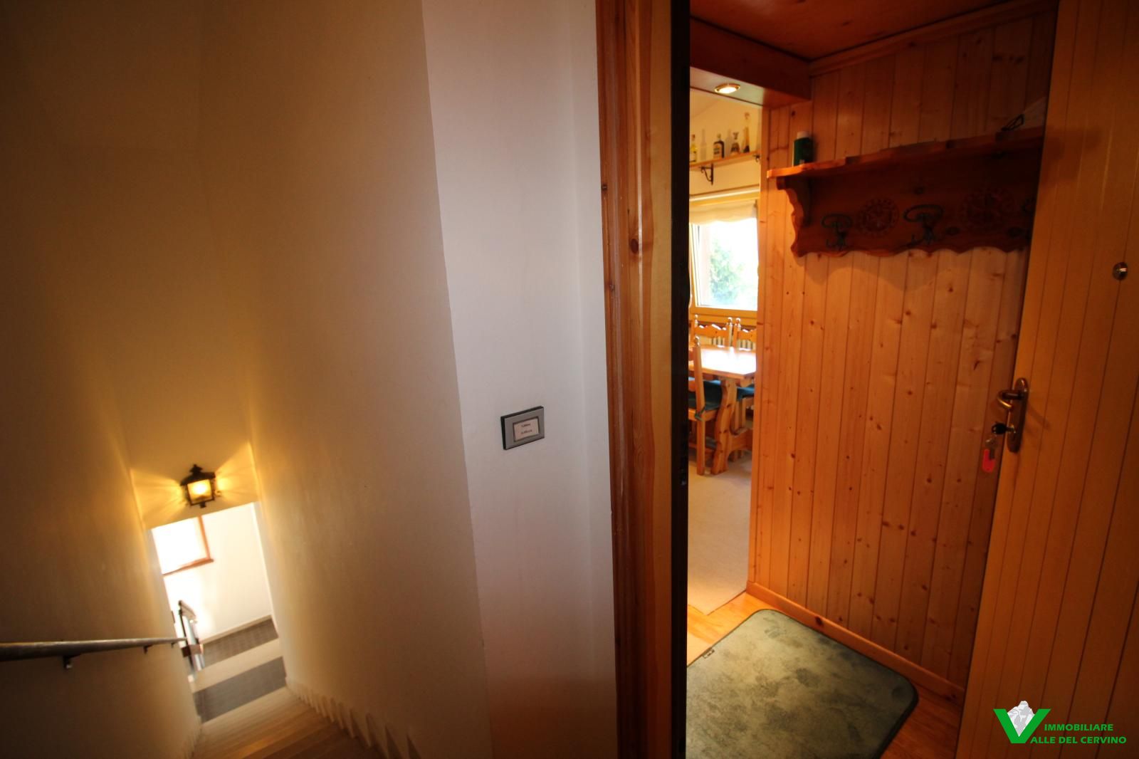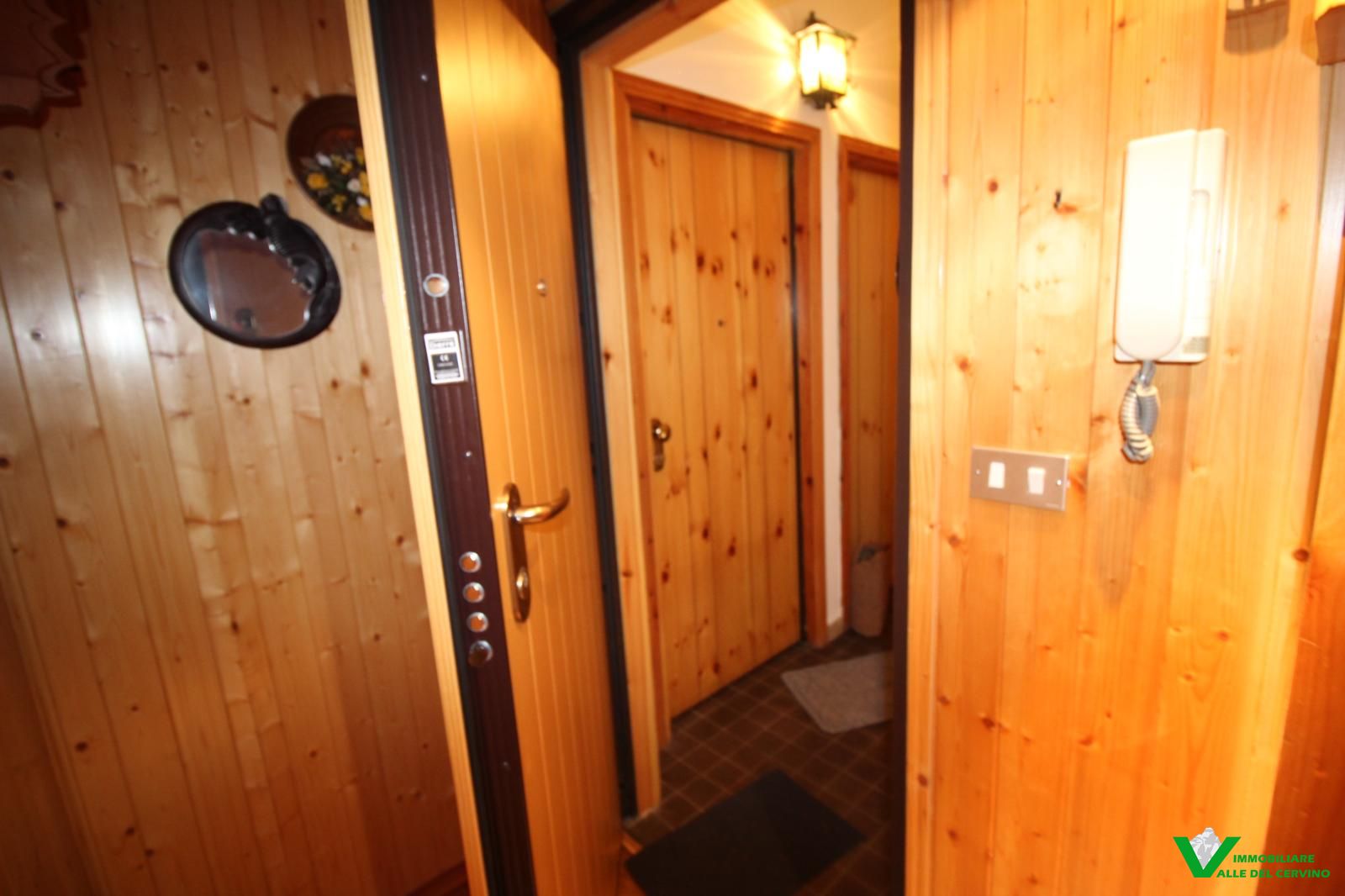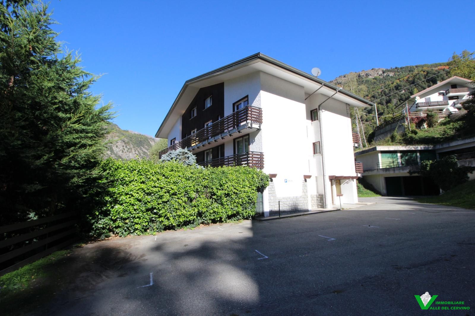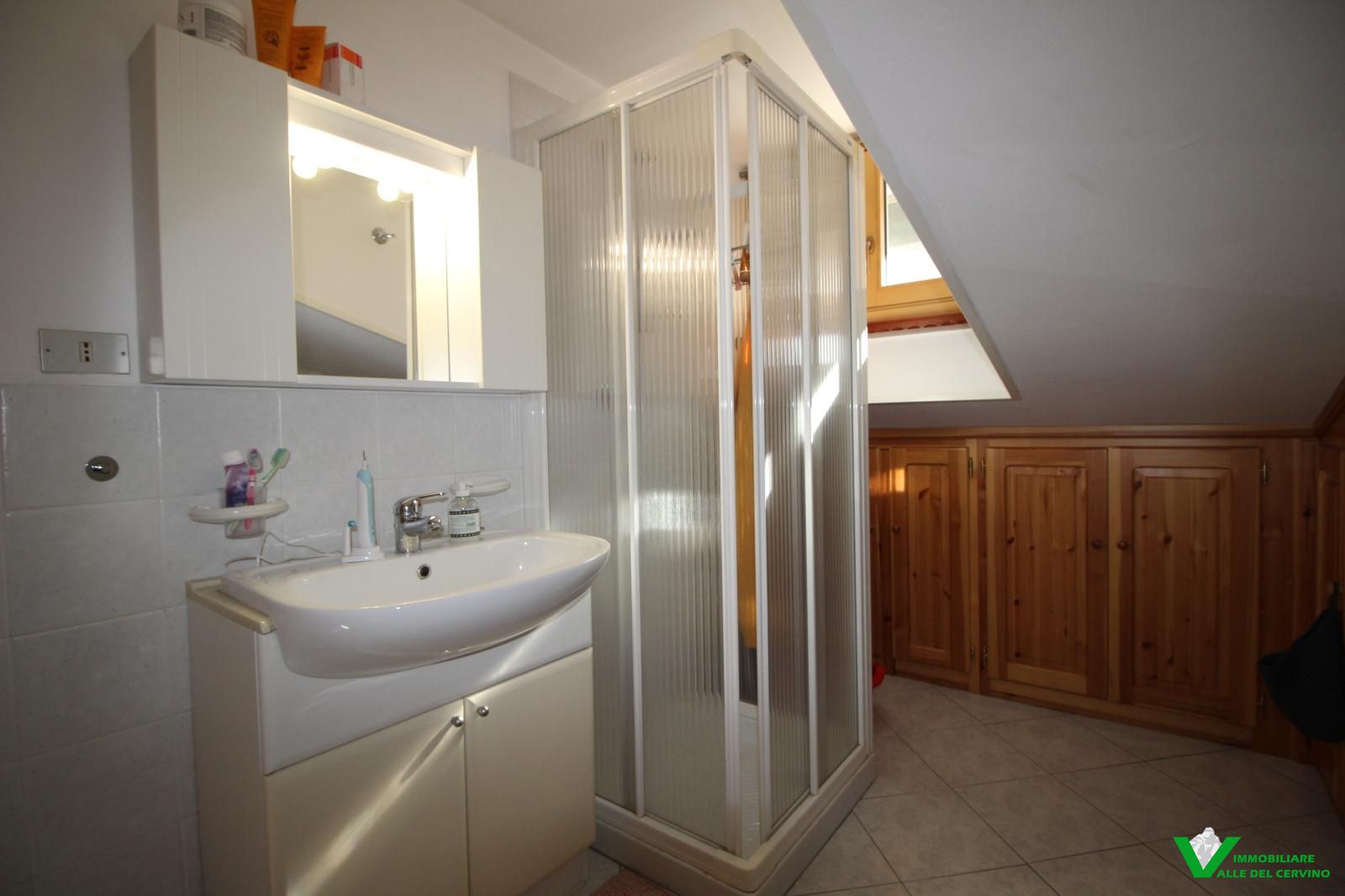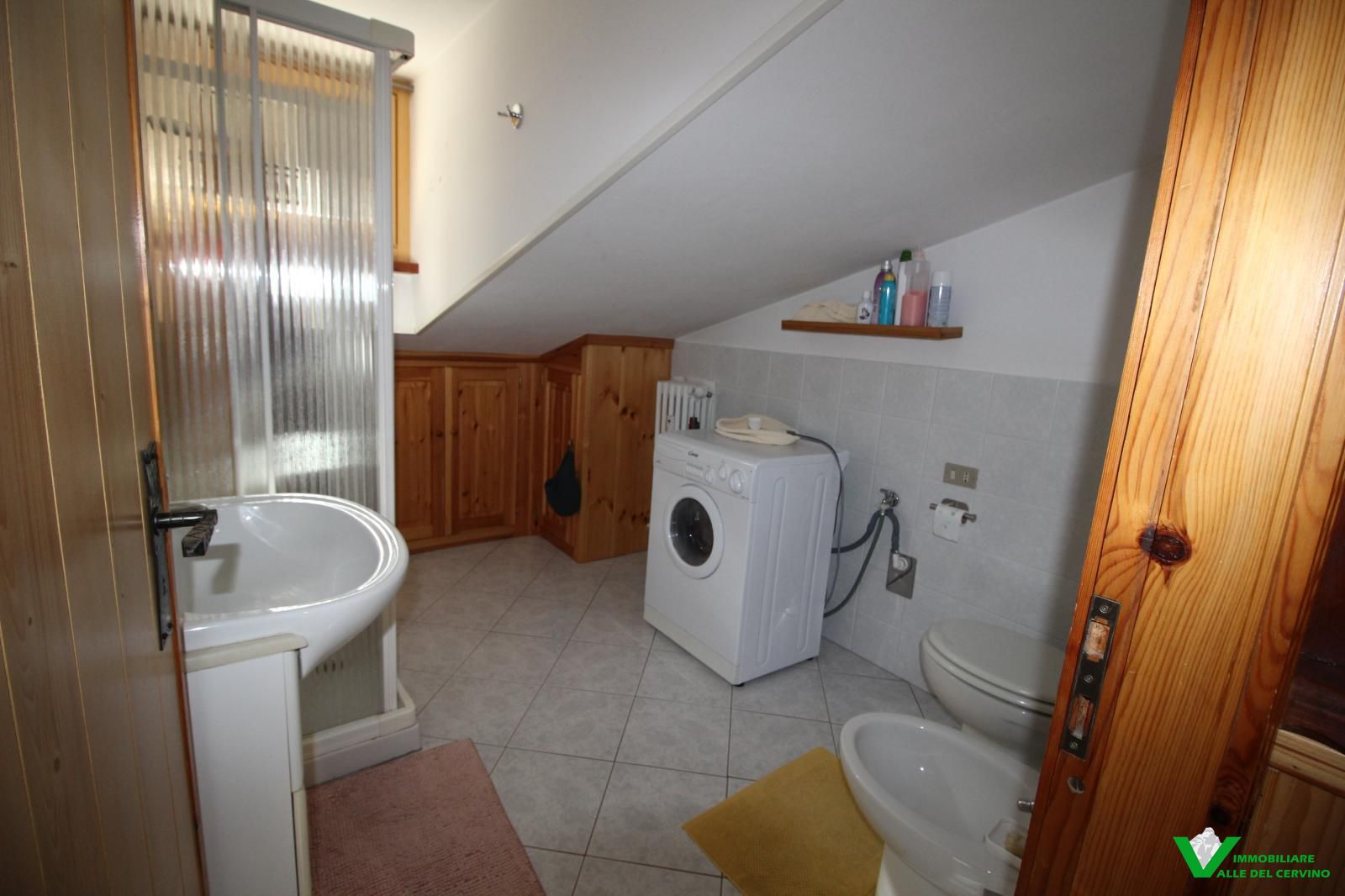 Petit Antey. Al terzo e ultimo piano senza ascensore di condominio ubicato in ottima posizione: soleggiata, tranquilla e a poca distanza dai servizi, curata mansarda in eccellente stato manutentivo con serramenti triplo vetro, porta blindata e intero arredamento in legno su misura a ottimizzarne lo spazio. Luminoso soggiorno con ampia vetrata e bella vista sulla valle, cucinotto, camera da letto, bagno.