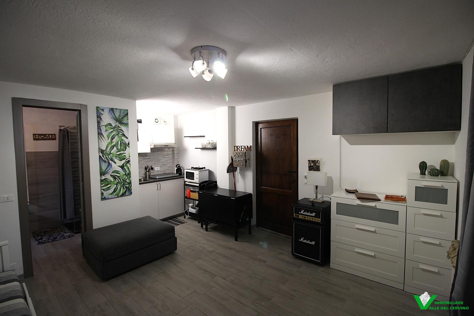 In contesto condominiale, monolocale soggetto a gradevole ristrutturazione interna. L'appartamento è composto da soggiorno con angolo cottura e divano letto, bagno finestrato. Accesso diretto su area di corte e grande terrazza condominiale da cui godere di bella vista sulla valle. Cantina e comodo box auto di proprietà